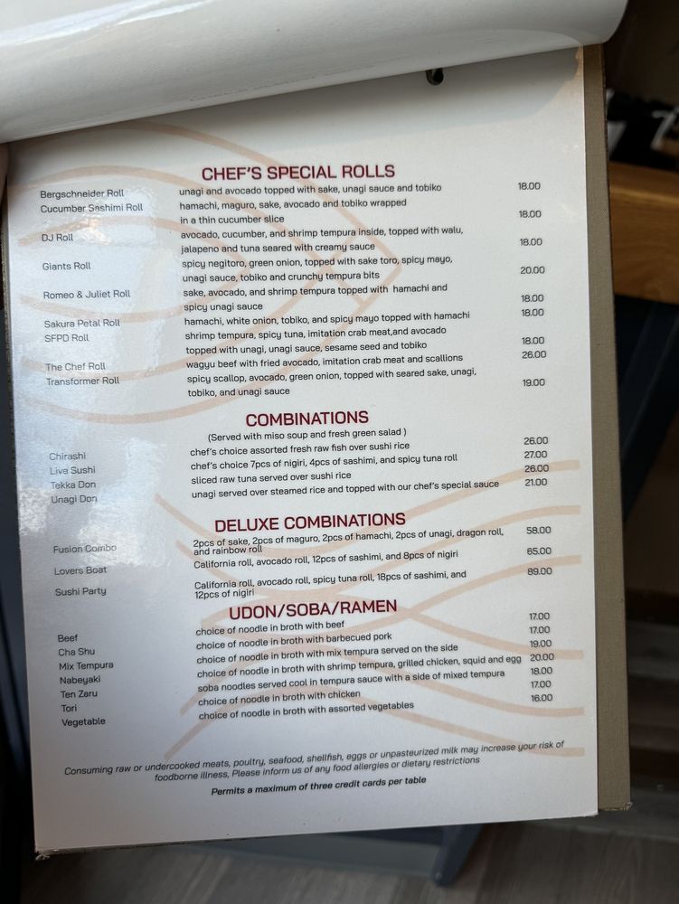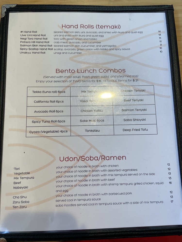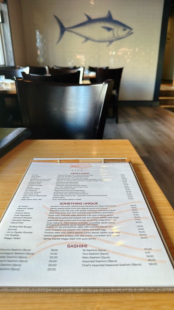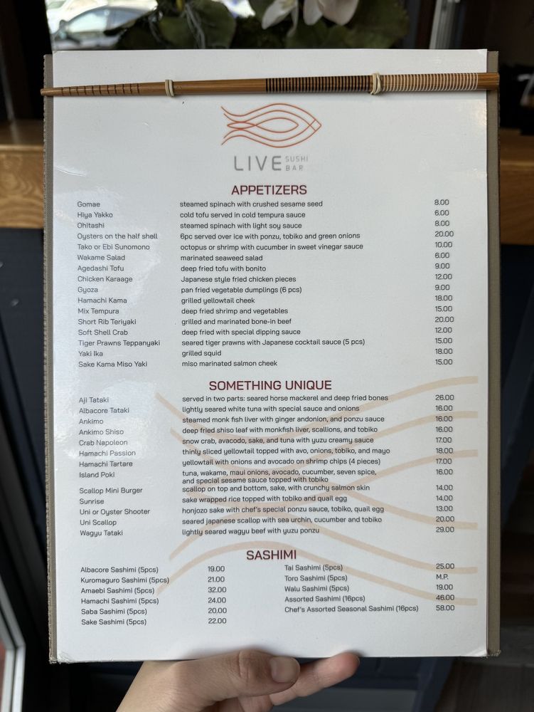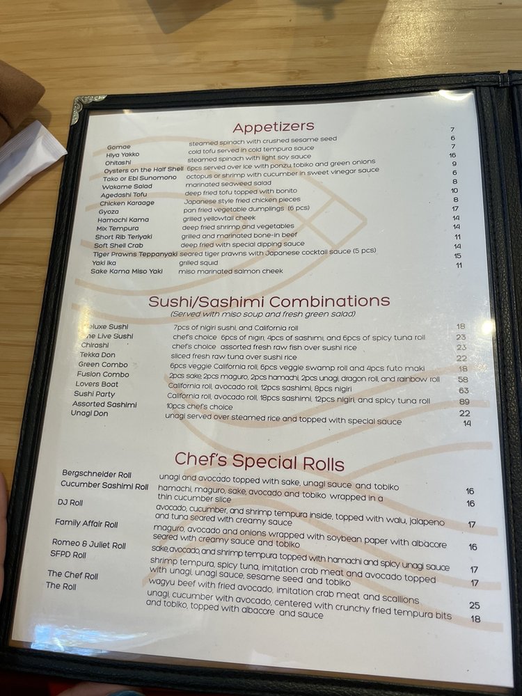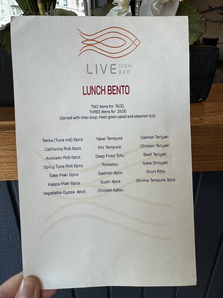 Introducing Live Sushi Bar, a casual yet vibrant Asian-owned restaurant located in San Francisco. The menu boasts a variety of vegan and vegetarian options, along with traditional Japanese dishes like Gomae, Ebi Sunomono, and Agedashi Tofu. With the option for bento dinner combos and hand rolls like Negi Toro and Potrero Hill, there's something for everyone to enjoy. Customers rave about the fresh fish and the friendly service, making it a great spot for a quick lunch or a relaxing dinner. Don't miss out on the Valentine Specials and the Live Sushi Combination for a truly satisfying meal. Live Sushi Bar offers a cozy ambiance with delicious food at affordable prices, making it a hidden gem in the bustling sushi scene of San Francisco.